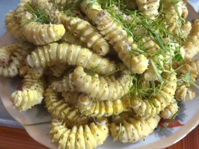 Ở vùng cao Tây Bắc có rất nhiều món đặc sản nổi tiếng được du khách tìm thưởng thức. Tuy nhiên, có những đặc sản Lào Cai tuy ít đâu có được nhưng lại khiến thực khách lần đầu nhìn thấy phải phát khiếp. Đó là món con tằm gai ăn lá sắn rang khô với lá chanh, món măng đắng chấm mẻ chua, món trứng kiến đen đồ xôi nếp...